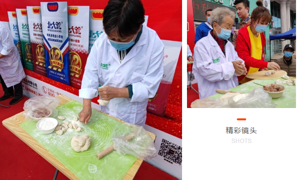 为让消费者切身体验北大荒高品质面粉,现场举办包饺子大赛,现场擀皮、包馅,在规定时间内比赛包出的饺子又好、又多为胜,参与者都有奖品。
